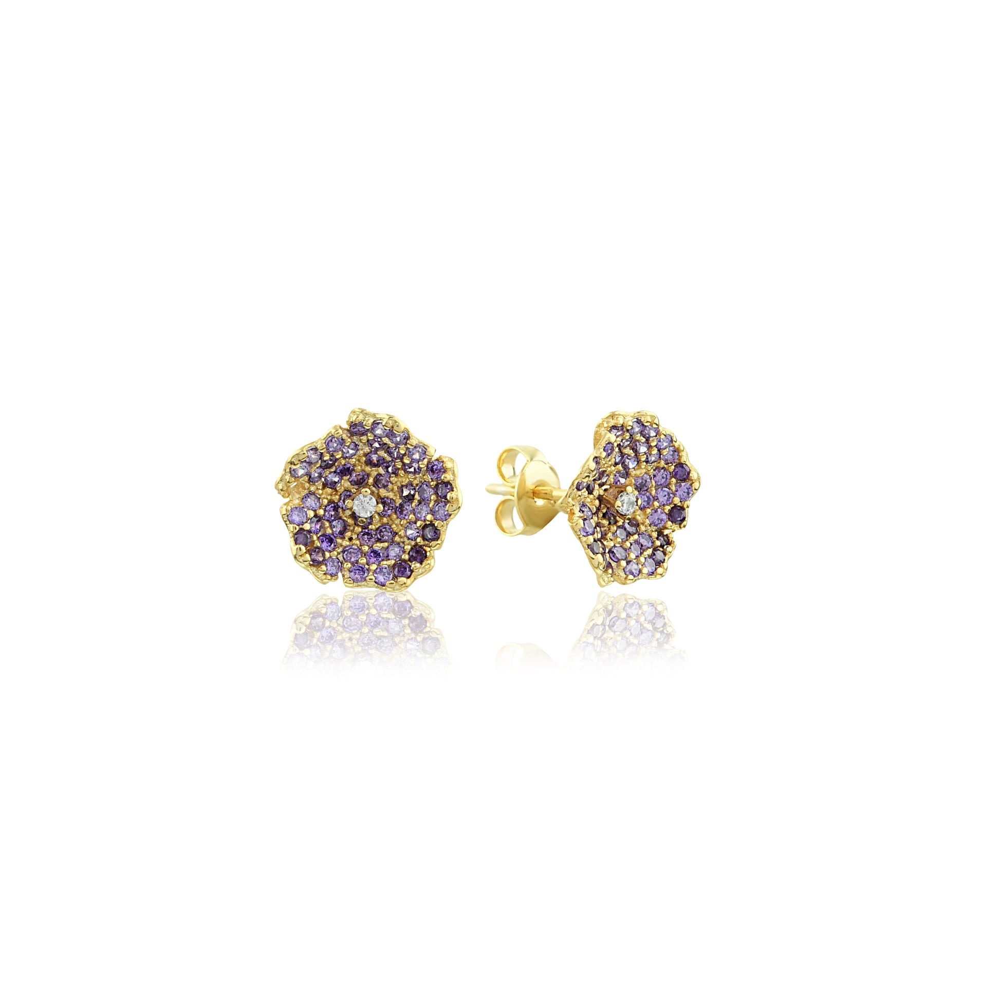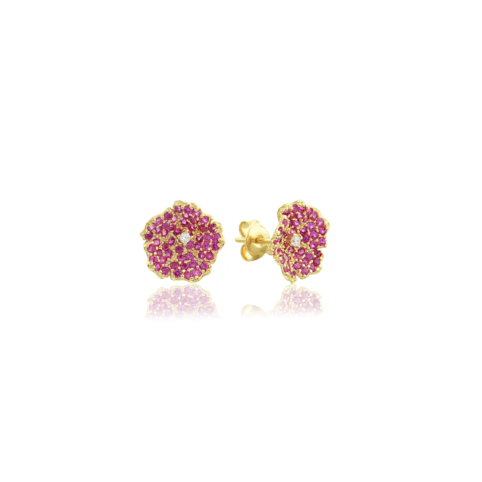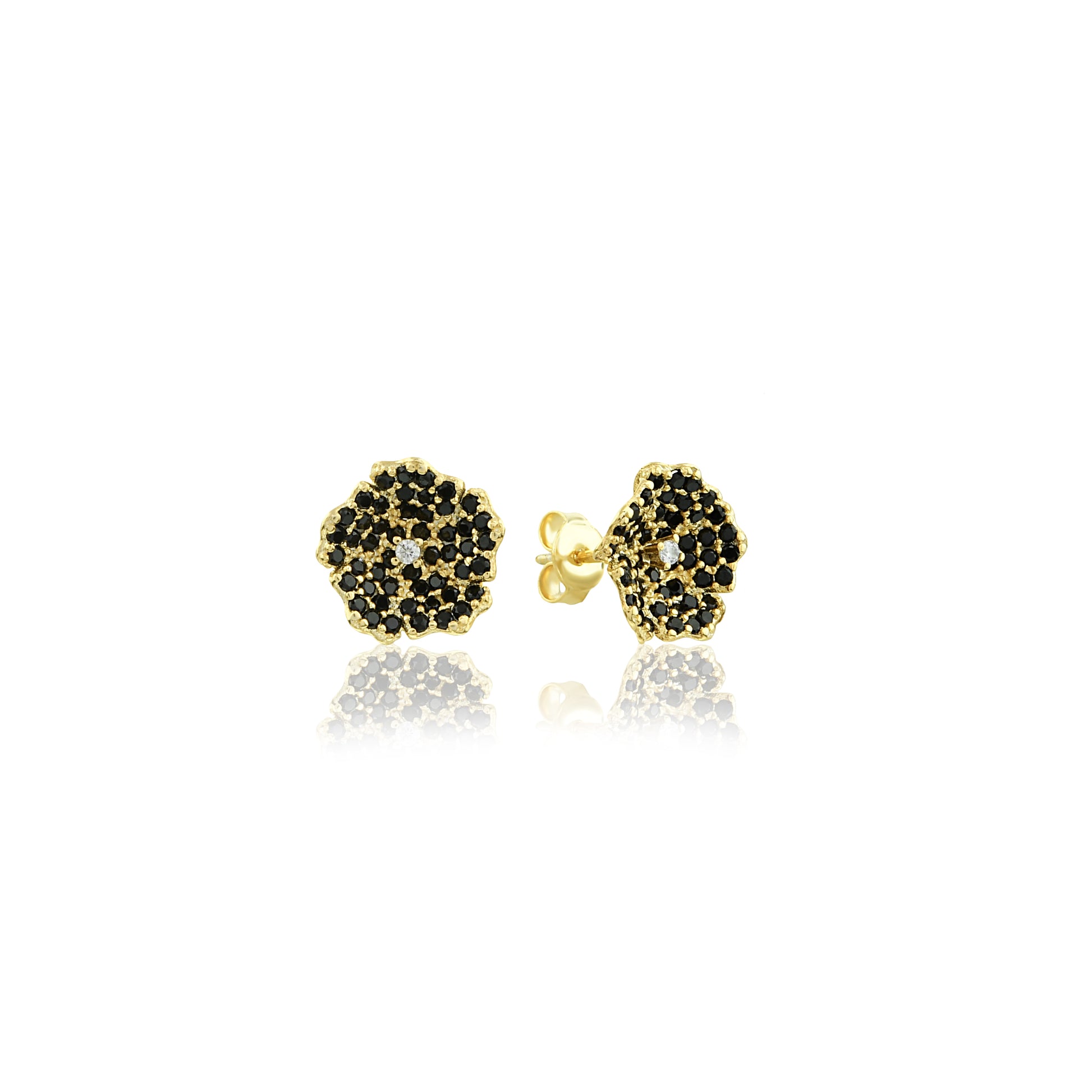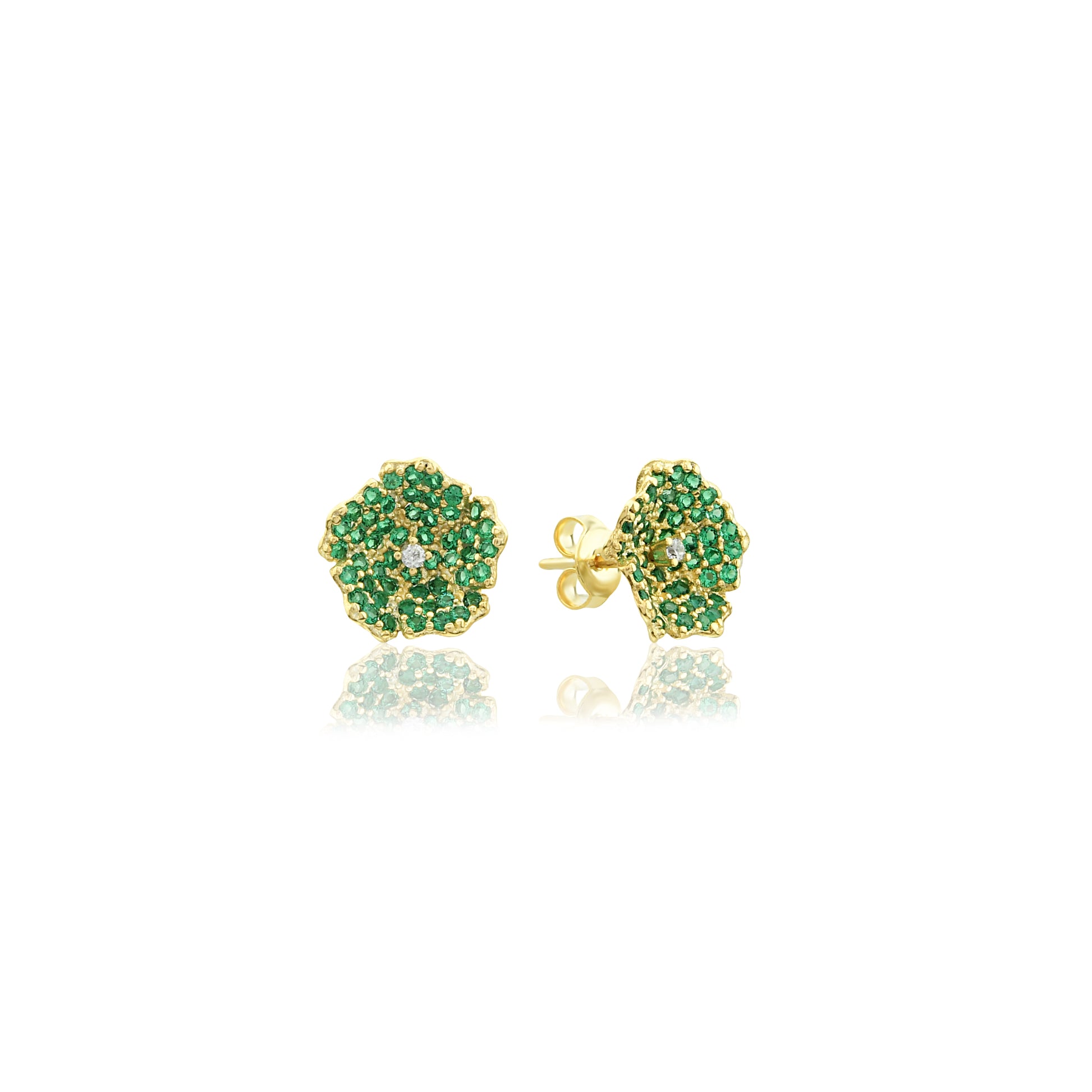 Enchanting Zircon Flower Earrings - Botanical Studs with Gold Plating