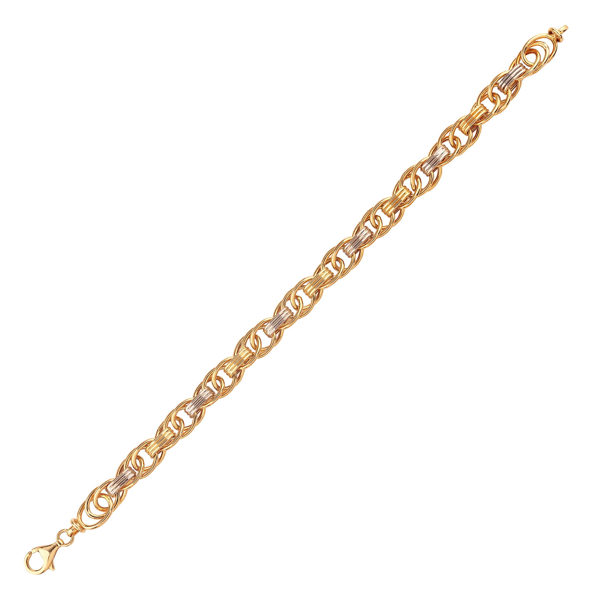 Uncover the epitome of affordable luxury with our Two Tone Hollow Bracelet. A meticulously crafted piece of jewelry, it marries simplicity and elegance flawlessly. Composed of 925 sterling silver and 14k gold plated material, it exhibits a beautiful intertwining design, leveraging the silver and gold tones in a beguiling dance of sophistication. Ideal as an everyday bracelet, its gold and silver compatibility makes it an effortless match with any outfit. Plus, the high-quality material ensures its durability over time. Finally, packed in a lavish box, it makes a perfect gift for a special occasion or just to express your love for the special someone in your life. Experience the aesthetic appeal of minimalism jewelry enhanced by the quality you can trust.