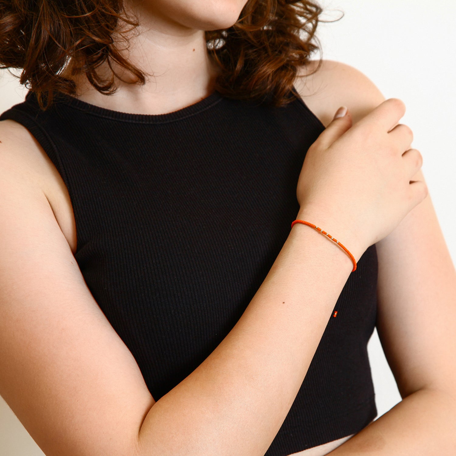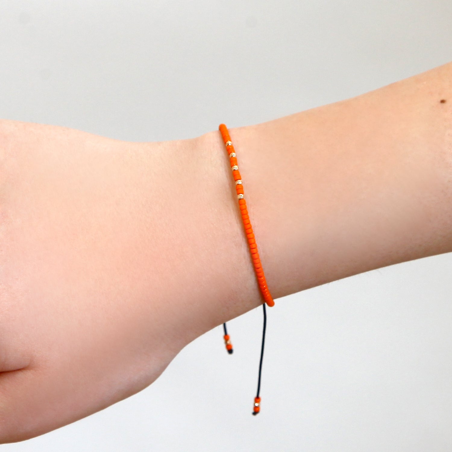 Orange String Bracelet with 14K Solid Gold Balls